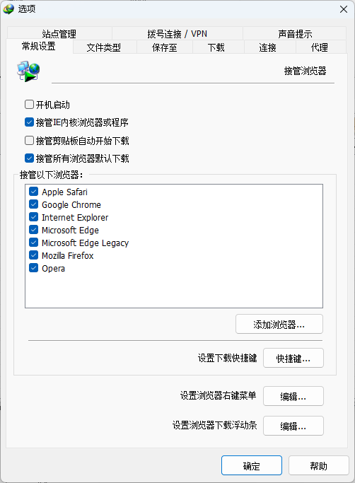 1. 打开idm,找到菜单栏的选项设置,打开后在-常规设置-的勾选情况为(可按照自己的需要勾选):