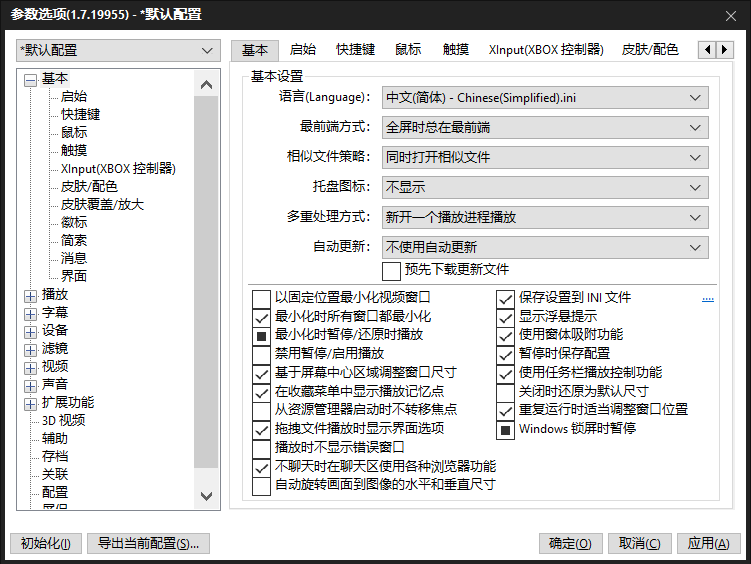 打开PotPlayer , 右键 → 选项 → 基本设置