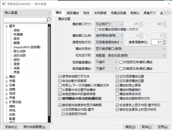 打开PotPlayer , 右键 → 选项 → 播放,按照如下配置设置: